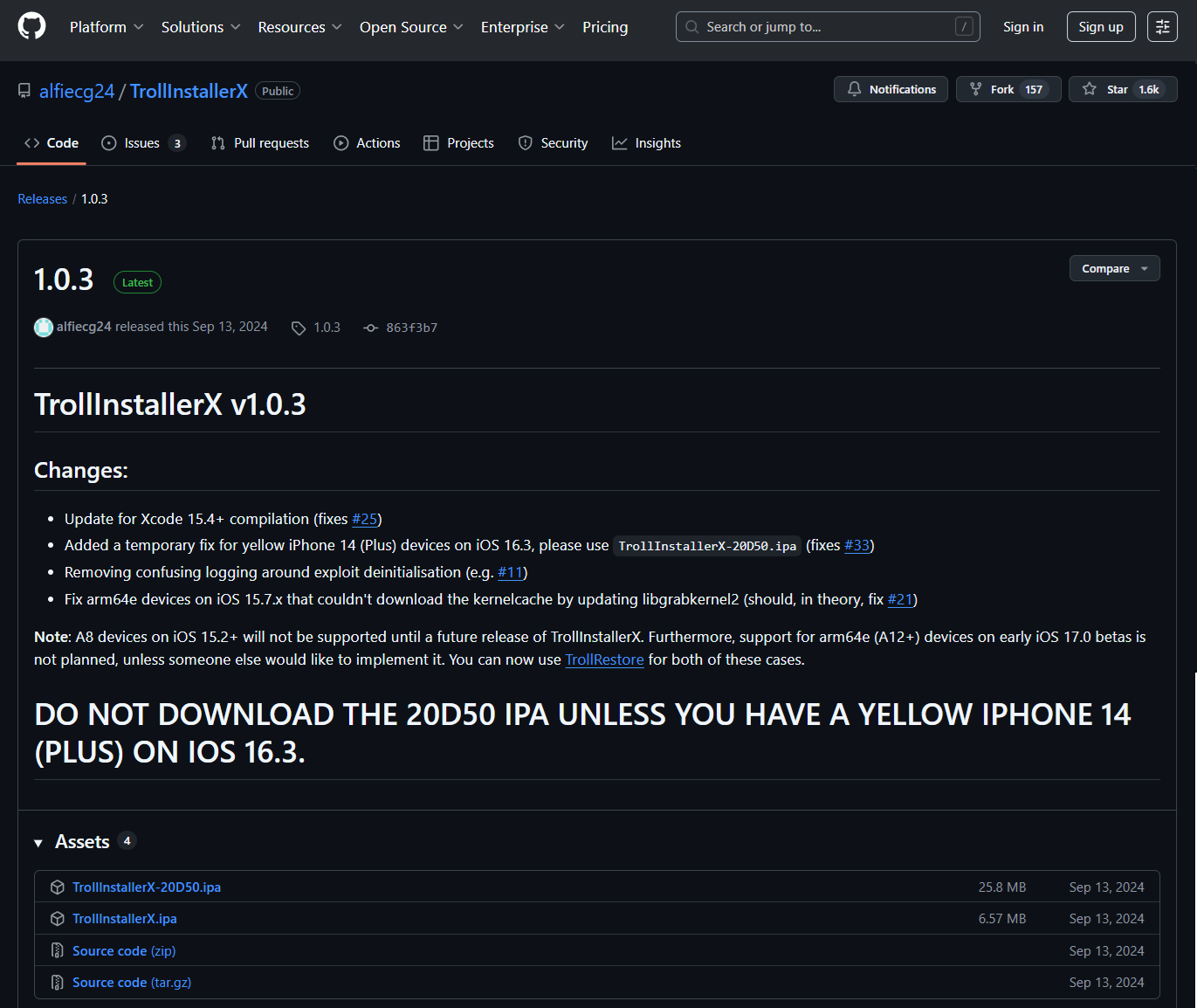 - iOS 15.7.2 ~ 15.8.4 A8 기기의 경우 → TrollMisaka 또는 TrollInstallerX 동시 지원
