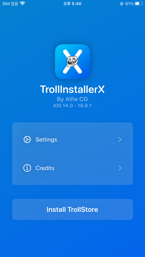 1) 홈 화면에서 TrollInstallerX 앱 실행